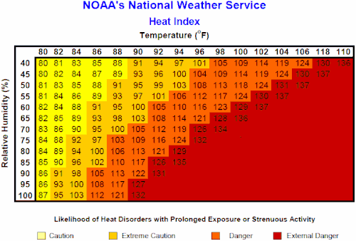 The effect of a heat wave can vary dramatically depending on humidity, which affects the temperature that one feels on one's skin. A person experiencing a dry heat wave may begin to feel discomfort when it is 32 °C (90 °F), but the same temperature and 75% humidity would feel like 43 °C (109 °F)! Humidity is not felt equally by everyone, but prepare for the worst, since when temperatures reach the upper 90's Fahrenheit and humid, no-one can cope who is not accustomed to these extremes.