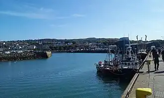 Howth (rhymes with both) is a small seaside town historically in County Dublin, 14 km northeast of Dublin city centre. It's on a "tombola" peninsula - once an island, it became connected to the mainland by a sandy isthmus, which is now the residential area of Sutton. The main reasons to visit Howth are for its beaches, clifftop walks and boat trips. It's glorious in August and September when the heather cloaks the cliffs in red.