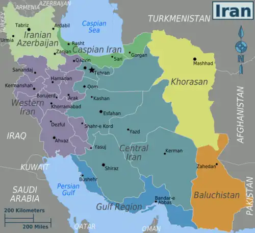 | Central Iran The traveller's main entry point. The capital, Tehran is situated here as are many other major cities like Qom and Esfahan. |
