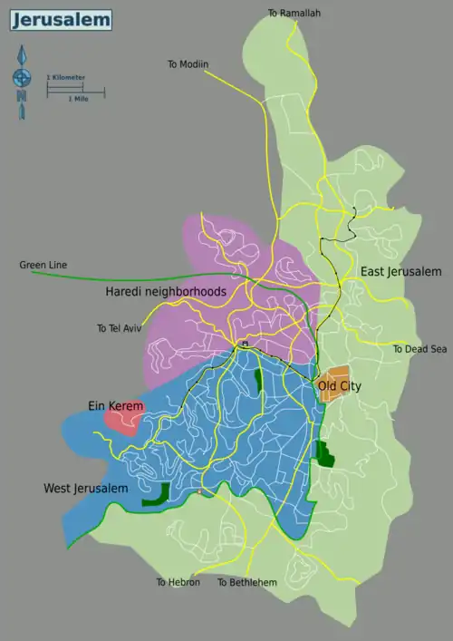 | Haredi neighborhoods This area is overwhelmingly inhabited by Haredi ("ultra-Orthodox") Jews, who give this area a distinctive feel compared to the rest of Jerusalem. Most of these neighborhoods are in West Jerusalem, but since 1967 some new neighborhoods have been built across the Green Line, in the northwest corner of East Jerusalem. |