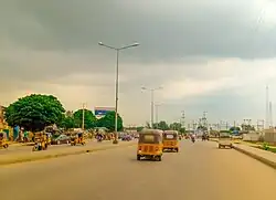 Yellow- and blue-coloured taxis can be hired on the roadside, ensure you agree a price before leaving. More common are the motorbikes where travellers sit behind the driver. There are also some motorised rickshaws (Daidaita sahu) introduced for Muslim women who do not want to sit up close to a motorbike driver.