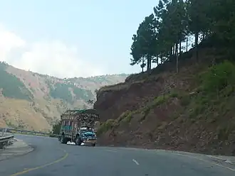 The state of the highway itself varies considerably over its 1300 km length. The road from Hassan Abdal starts off in good condition, however by the time the highway starts to climb in to the Kohistan district it deteriorates significantly. From roughly Besham to Chilas the road hugs the side of the river valley, with the raging Indus river below. The road is narrow and bumpy and is being actively worked on in places, with large and high consequence drops just off the edge of the road. Traffic travels at high speed, and accidents are common. Care should be taken on this section if you are driving or cycling. Work is being done as part of the China–Pakistan Economic Corridor to upgrade this section of the KKH, so the quality and width of the road should improve in the coming years.