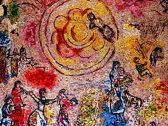 Head back to Dearborn and continue south. Dominating the next block is the curved Chase Tower and the large plaza at its feet. Courtesy of the Russian-Jewish painter Marc Chagall, this plaza has become a must-see attraction for art lovers in Chicago. The Four Seasons is a 70 foot long mosaic/mural featuring light-hearted surrealist depictions of Chicago. After you have finished here continue south on Dearborn Street.