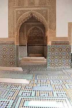 Saadian Tombs - 🌍 Saadian Tombs. The tombs were built in the 16th century as the dynastic necropolis of the Saadian dynasty at the height of its power. After the dynasty's decline, the cemetery was progressively forgotten and its entrance walled off, until they were rediscovered and restored in the early 20th century. Unlike the El Badi Palace, they are very well preserved and an excellent showcase of the best architecture from this era. Inside you will find an overload of zellij (Moroccan mosaic tiles), painted wood, and carved stucco, all set within an enclosed garden. The most ornate chamber, accessible through a small opening, is the Chamber of the Twelve Columns, where Ahmad al-Mansur, the most powerful Saadian sultan, is buried. The site is small and compact, so it does not take a lot of time to explore. Also, there are no explanatory signs, so you should hire a guide or consult a guidebook to explain you what you're seeing to get the most out of your visit. 70 dirham.