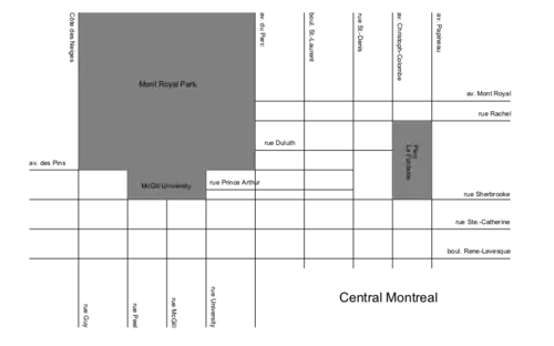 | The Plateau Trendy area north of downtown and east of Parc du Mont-Royal. |