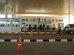 Roughly 4 km north of each city's centre, the Second Thai-Lao Friendship Bridge connects Mukdahan with the Lao city of Savannakhet on the opposite side of the Mekong River. There is a regular bus connection between the cities; a one-way ticket costs 100 baht. While there is no formal bus stop at either end of the bridge, passengers need to disembark for the border formalities on both sides; hence in practice it's possible to buy a ticket and board the bus on the border if you've arrived there by other means.