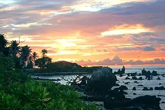 - 🌍 Anibare Bay, Anibare district (along the Ring Road). Anibare Bay is the sole exception to the rule cited above about the absence of the classic Polynesian "sandy beaches, cool ocean breezes, and pristine blue waters" experience on Nauru. Here you'll find a fine stretch of white sand surrounded by palm groves, deep and clean enough for proper swimming (among a fantasyland of beautiful coral pinnacles, no less). Anibare is also a great place for seeing the sunrise; at 166°E longitude, Nauru is among the first countries in the world to see a new day. The smaller of Nauru's two ports, 🌍 Anibare Harbour is at the southern end of the bay. Constructed in the early 2000s with Japanese capital, you can watch local fishermen bring their catch to land here.