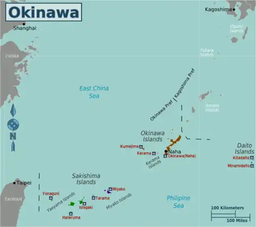 Okinawa (Japanese: 沖縄 Okinawa, Okinawan: 沖縄 Uchinaa) is a subtropical island chain between mainland Japan and Taiwan. Formerly the Ryukyu Kingdom, with its own language and culture, it's now one of Japan's 47 prefectures and the country's answer to Hawaii, with a complicated mix of gorgeous scenery, mass tourism, tragic history, cultural pride, and looming military presence.