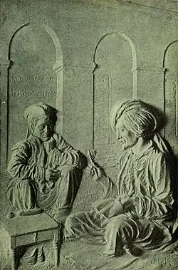 Kim and friends are hanging about in the bazaar, outside the old Ajaib-Gher—the Wonder House, as the natives call the Lahore Museum (see Lahore#Museums), when an unusual person appears, a man as Kim, who thought he knew all castes, had never seen. ... At his belt hung a long open-work iron pencase and a wooden rosary such as holy men wear. On his head was a gigantic sort of tam-o'-shanter.