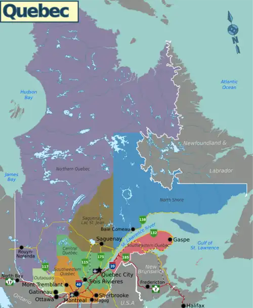 | Northern Quebec (Abitibi-Témiscamingue, Baie-James, Nunavik) The sparsely inhabited north and northwestern region of the province, with logging and mining towns and hydro-electric projects, as well as Inuit and other Native communities. |