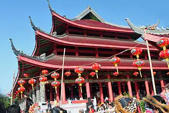 - 🌍 Sam Poo Kong Temple (Kelenteng Sam Poo Kong, Gedung Batu), Jl Simongan No. 129, ☏ +62 24 760-5277. The beautiful Sam Poo Kong temple (Gedung Batu) was built to honour the Muslim Chinese admiral Cheng Ho of the Ming Dynasty, who visited Semarang in the early 15th century. It was extensively renovated in 2006 to celebrate the 600th anniversary of Cheng Ho's visit. In the entry area, there are a couple of stores that sell Chinese art and objects, including giant candles and, of course, there's a place to eat. This complex is one of the major temples for certain Chinese religions, notably Kong Hu Chu (Confucianism), and is replete with a long stone mural depicting major events of Cheng Ho's time here, as well as several different temples, each with its own specific style and architecture. You can burn an envelope in a special prayer oven, or ask a soothsayer to read fortune-telling sticks for you. The temple area is open to visitors if you pay an additional fee, otherwise, you can see much of it from behind a chain - but the mural is behind the temples - but only those seeking to pray may actually enter the temples.