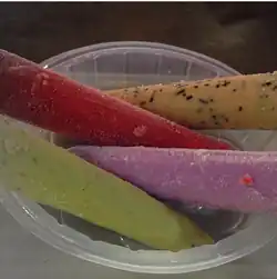 Kulfi is a frozen dairy dessert eaten across all South Asian countries with its popularity stretching as far as Myanmar. Often dubbed "Indian ice cream", its taste for the most part will remind you of ice cream though there are a few key differences. Kulfi is made from evaporated milk and sugar does not contain eggs and is not whipped or aerated. As a result, kulfi is denser, creamier and slower to melt than ice cream and can have a slightly chewy texture. The most common shape of kulfi is a long, thin cone. When you buy it from stalls or trucks on the street it is usually served on a stick, while in restaurants it is given in a cup or plate. The traditional flavours include malai (cream), cardamom, rose, pistachio, mango and saffron. For those with allergies, keep in mind that even non-nut flavours often contain nuts (almonds, pistachios and cashews being most common). Nowadays, much like ice cream, you will find hundreds of flavours as you shop around and go to different vendors.