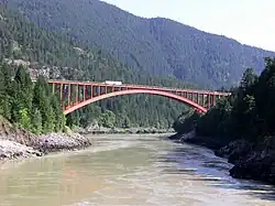 The Trans-Canada Highway exits the freeway at 🌍 Hope (exit 170) and turns north through the Fraser Canyon, turns east at 🌍 Cache Creek, and enters 🌍 Kamloops, rejoining the freeway (westbound traffic exits the freeway at exit 362).