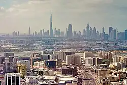 Dubai skyline. The tallest building in the world, Burj Khalifa, can be seen in the background.