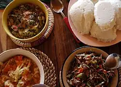 Traditional Zambian food revolves around one staple, maize, served in one form, nsima (n'SHEE-ma). Nsima is basically a type of thick porridge, rolled into balls with your right hand and dipped into a variety of stews known as relishes (ndiwo, umunani). Those who can afford them eat relishes of beef, chicken or fish, but the many who can't make do with beans, tiny dried fish (kapenta), peanuts, pumpkin leaves (chibwabwa) and other vegetables such as okra (ndelele), cabbage and rape. At breakfast, nsima can be served watered down into a soup, maybe with a little sugar. Local restaurants will serve nsima and relish for less than 5 kwacha.