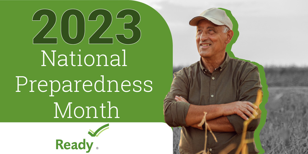Social media graphics for the 2023 National Preparedness Month (NPM) in English and Spanish.